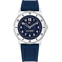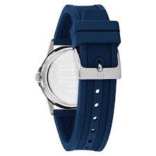 reloj Tommy Hilfiger Junior 1720040 destaca por su diseño moderno con una esfera azul y correa de silicona. Su caja de acero inoxidable de 34 mm y resistencia al agua de hasta 50 metros lo hacen ideal para un estilo juvenil y funcional.