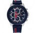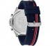 Reloj Tommy Hilfiger para hombre de la colección Clark fabricado en acero inoxidable y silicona en color azul y rojo. Estamos ante un reloj de diseño original y atractivo compuesto por caja en color azul de 46mm de diámetro con esfera azul marino que cuenta con indicadores y agujas en plateado movidas por mecanismo multifunción. Todo ello protegido por cristal mineral. Su correa es de silicona en azul marino con franjas roja y blanca. Posee cierre de hebilla. Resistente al agua hasta 5 ATM.