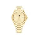Reloj Tommy Hilfiger para mujer de la colección Brook fabricado en acero inoxidable con baño dorado. Se trata de un reloj de diseño clásico y elegante con caja de 36mm de diámetro con esfera dorada al igual que sus índices y agujas movidas por mecanismo de cuarzo analógico protegido por cristal mineral. Su correa la forman eslabones dorados con cierre plegable. Resistente al agua hasta 50 metros.