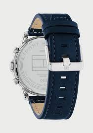 Reloj Tommy Hilfiger 1792051 Caja de acero, Multifunción de 46mm, correa de cuero azul de 22mm. Impermeable 5 ATM