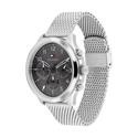 Reloj Tommy Hilfiger para hombre de la colección Asher fabricado en acero inoxidable plateado. Se trata de un reloj de diseño atractivo y elegante que cuenta con caja plateada de 44mm de diámetro con esfera negra que contiene índices y agujas en gris movidas por mecanismo multifunción protegido por cristal mineral. Su correa es de tipo malla milanesa plateada con cierre desplegable. Resistente al agua hasta 50 metros.