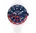Reloj Tommy Hilfiger para hombre de la colección TH-Regatta. La caja redonda es de plástico blanco con bisel azul/rojo. La caja tiene 12 mm de grosor y 44 mm de diámetro. La esfera es azul y cuenta con una pantalla analógica. La correa es de silicona blanca. El ancho de las asas es de 21 mm. El movimiento es un cronógrafo con fecha. Resistencia al agua: 10 ATM.
