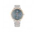 Reloj multifunción, caja de acero inoxidable, esfera azul tornasolada. Brazalete de eslabones en acero inoxidable bicolor acabado brillo.