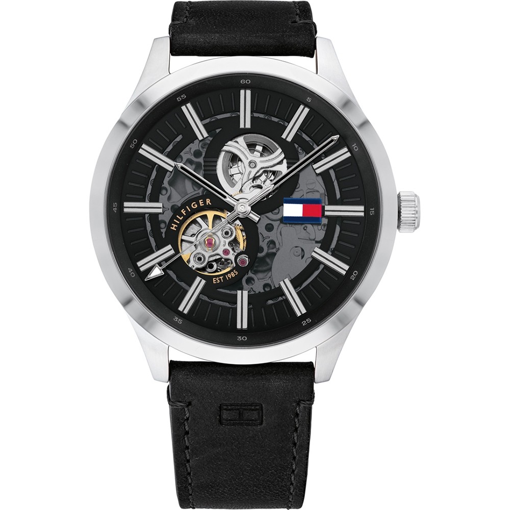 Este reloj marca Tommy Hilfiger tiene una caja de acero inoxidable con un diámetro de 44 mm y cuenta con una correa de piel. Dentro de la caja se encuentra un mecanismo Automático de alta calidad el cual esta protegido por un cristal Mineral.