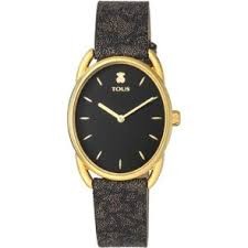 Reloj Tous Dai para señora, movimiento de cuarzo, caja ovalada de 32x27mm de acero 316L hipoalérgico acabado IP negro, correa de piel con el estampado Kaos negro, WR 3bar,