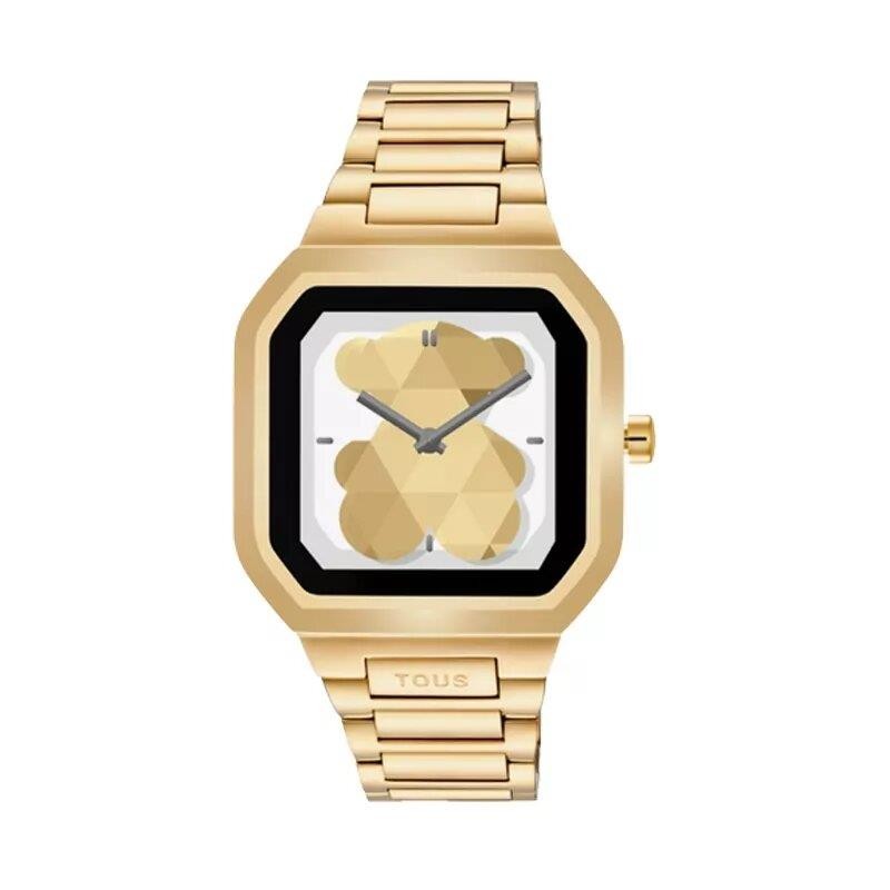 Smartwatch TOUS Watches para mujer de la colección B-Connect fabricado en acero inoxidable dorado. Estamos ante un elegante reloj de última generación compuesto por caja de 38x46,8mm con cristal mineral y brazalete formado por eslabones plateados y dorados con cierre desplegable mediante doble pulsador. Resistente al agua IP68.