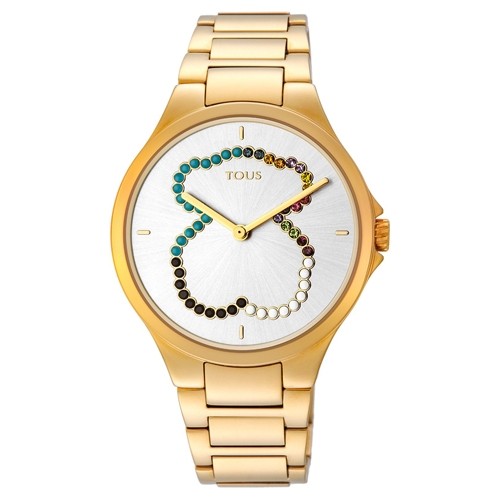 Reloj Motion Straight oso de acero IP dorado con cristales.