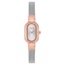 Reloj analógico joya TOUS Oval Icon con brazalete de acero inoxidable y acero rosado. Diámetro caja: 18 mm x 28,5 mm. Cristal mineral plano ovalado. Funciones: horas y minutos. Movimiento: analógico de cuarzo japonés. Impermeable: 3 ATM. Brazalete: 8mm x 8mm x 79mm / 8mm x 8mm x 82mm. Cierre con malla milanesa/eslabones ajustable.