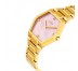 Reloj analógico TOUS Karat con brazalete de acero dorado. Dimensiones: 33 mm x 32 mm. Esfera de nácar en color rosa con cristales facetados en los índices. Cristal mineral plano octogonal. Funciones: hora y minutos. Impermeable a 3 ATM. Movimiento analógico de cuarzo japonés. Brazalete: 86,9mm x 21,3mm x 16mm / 77,2mm x 21,3mm x 16mm. Cierre mariposa con pulsadores.