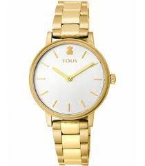 Reloj TOUS para mujer de la colección Tender Time fabricado en acero inoxidable bañado en oro. Estamos ante un elegante reloj lleno de atractivo que le aporta TOUS compuesto de caja plateada de 38mm de diámetro con esfera plateada en combinación con sus índices y agujas doradas movidas por mecanismo de cuarzo analógico protegido por cristal mineral. Su correa está compuesta por eslabones bañados en oro, posee cierre deployante. Resistente al agua hasta 50 metros.
