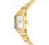 Reloj analógico TOUS Karat Squared con brazalete de acero IPG dorado 316L, dimensiones 32 x 34 mm y esfera de metal con cristales facetados en los índices. Funciones: hora y minutos. Impermeable a 3 ATM. Batería: 1,55V Oxido de plata SR621SW/0,3 gramos. Movimiento cuarzo japonés. Cierre desplegable con pulsadores