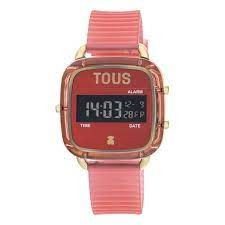 Reloj digital TOUS D-Logo Fresh de acero inoxidable 316L y brazalete de silicona roja. Dimensiones: 36 x 36 mm y esfera de metal con pantalla de cristal líquido. Funciones: hora, minutos, segundos, mes, día, día de la semana, cronógrafo 1/100 segundos y alarma. Impermeable a 3 ATM. Batería: 3V litio CR2016 / 1,69 gramos. Cierre hebilla.