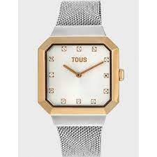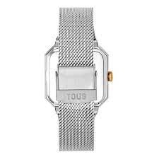 Reloj analógico TOUS Karat Squared de acero IPRG rosa con brazalete de acero 316L, dimensiones 32 x 40 mm y esfera de metal con cristales facetados en los índices. Funciones: hora y minutos. Impermeable a 3 ATM. Batería: 1,55V Oxido de plata SR626SW/0,3 gramos. Cristal mineral facetado plano cuadrado. Movimiento cuarzo japonés. Cierre de malla milanesa con seguridad.