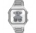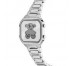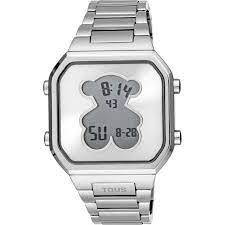 Reloj digital D-BEAR con brazalete de acero inoxidable y caja de acero inoxidable. Diámetro caja: 36,5 x 44,8 mm. Esfera: metálica / Pantalla cristal líquido (LCD) con luz. Funciones: hora en 12 o 24 horas, minutos, segundos, día, mes y día de la semana, cronógrafo 1/100 segundos y alarma. Impermeable a 3 ATM. Batería: 3V litio CR2025 / 2,5 gramos (litio 0,003 gramos). Calibre: BJ3682. Cristal: plano cuadrado con forma de oso en el interior. Cierre desplegable con pulsadores.