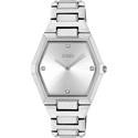 Material de caja: Acero Inoxidable. Diámetro de caja: 25,5mm. Mecanismo: Analógico. Cristal mineral. Material de correa: Acero Inoxidable. Cierre: Desplegable. Resistencia al agua: Hasta 3 ATM.