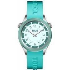 reloj Tous Mini Self Time 200358053 orientado para cadete y mujer, tiene la caja de acero y aluminio con forma circular. La pulsera es de silicona verde, bisel de acero color verde. El cristal es mineral, el movimiento cuarzo y el display analógico. Impermeabilidad: 3 ATM. Diámetro: 30 mm. Tipo de cierre: Hebilla.