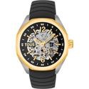 Reloj TOUS para mujer de la colección Now fabricado en acero inoxidable plateado y dorado y silicona en color negro. Estamos ante un atractivo reloj de diseño elegante compuesto por caja dorada de 42mm de diámetro con esfera tipo skeleton a través de la cual podemos ver su mecanismo automático. Todo ello protegido por cristal mineral. Su correa es de silicona en color negro con cierre de hebilla. Resistente al agua hasta 10 ATM.