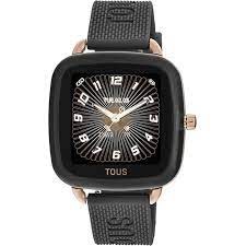 Smartwatch TOUS para mujer de la colección D-Connect fabricado en acero inoxidable rosado y silicona en color negro. Estamos ante un reloj de última generación compuesto por caja de acero de 38,8x39,5mm con pantall de cristal endurecido. Su correa es de silicona en color negro y tiene cierre de hebilla. Resistente al agua entre 1 a 3 metros y es hermético al polvo.