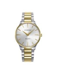 Reloj Viceroy Swiss Made Hombre 45119-87 con caja de acero 40 mm color plata, esfera color plata, cristal zafiro y correa de acero bicolor con cierre desplegable con pulsador.