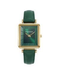Reloj caja de acero Ip dorado y correa de piel verde con movimiento cuarzo