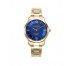 Reloj de acero dorado con esfera azul y movimiento de cuarzo