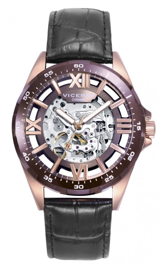 Reloj Viceroy Magnum 401341-13 analógico para hombre con movimiento automático, correa de piel y resistencia al agua de 100 metros.