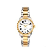 reloj de mujer Viceroy destaca por su diseño bicolor que equilibra estilo y sofisticación. La caja y el brazalete están fabricados en acero con detalles en acabado dorado, ofreciendo un aire de lujo discreto. Su esfera blanca, decorada con números árabes, asegura una lectura sencilla y precisa. Las agujas en dorado realzan el conjunto con un toque elegante.