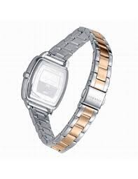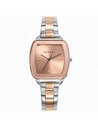 Caja de acero bicolor rose de 30 x 38 mm. con tapa de fondo a presion. Esfera en color rose con indices y 3 agujas.