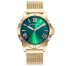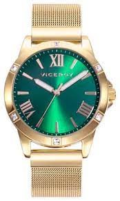 Reloj Viceroy para mujer de la colección Chic fabricado en acero inoxidable dorado. Este atractivo reloj posee un diseño atrevido y original compuesto de caja dorada con esfera verde con índices en dorado y agujas luminiscentes movidas por mecanismo de cuarzo analógico protegido por cristal mineral. Su correa es de malla milanesa en dorado con cierre deslizante ajustable. Resistente al agua hasta 50 metros.