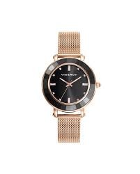 Reloj Viceroy para mujer de la colección Chic fabricado en acero inoxidable en color rosado. Estamos ante un reloj de diseño elegante y femenino compuesto por caja de 38mm de diámetro en color negro al igual que sus esfera compuesta por indicadores y agujas rosadas movidas por mecanismo de cuarzo analógico protegido por cristal mineral. Su correa es de malla milanesa con cierre deslizante de seguridad. Resistente al agua hasta 50 metros.
