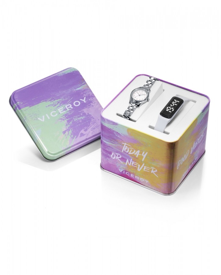 Reloj Viceroy Sweet Pack 401258-04 analógico para niña con movimiento de cuarzo, correa de acero inoxidable y resistencia al agua de 30 metros.