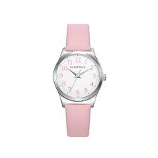 Reloj Viceroy para niña de la colección Next fabricado en acero inoxidable plateado y piel en color rosa. Se trata de un elegante reloj compuesto por caja plateada de 28mm de diámetro con esfera blanca que contiene indicadores y agujas en plateado movidas por mecanismo de cuarzo analógico protegido por cristal mineral. Su correa es de piel en color rosa con cierre de hebilla. Resistente al agua hasta 3 ATM.