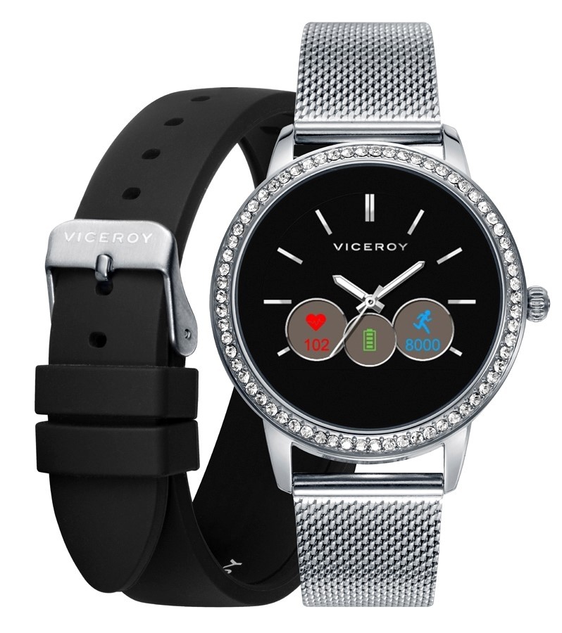 Reloj Viceroy Smart Pro 401150-80 digital para mujer recargable, correa milanesa y resistencia al agua de 50 metros.
