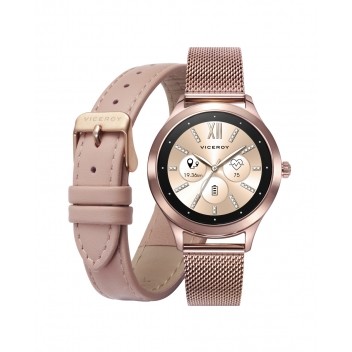 RELOJ VICEROY SmartPro lifestyle EN ACERO ROSADO CON DOBLE CORREA EN ACERO DE MALLA MILANESA Y EN PIEL ROSA