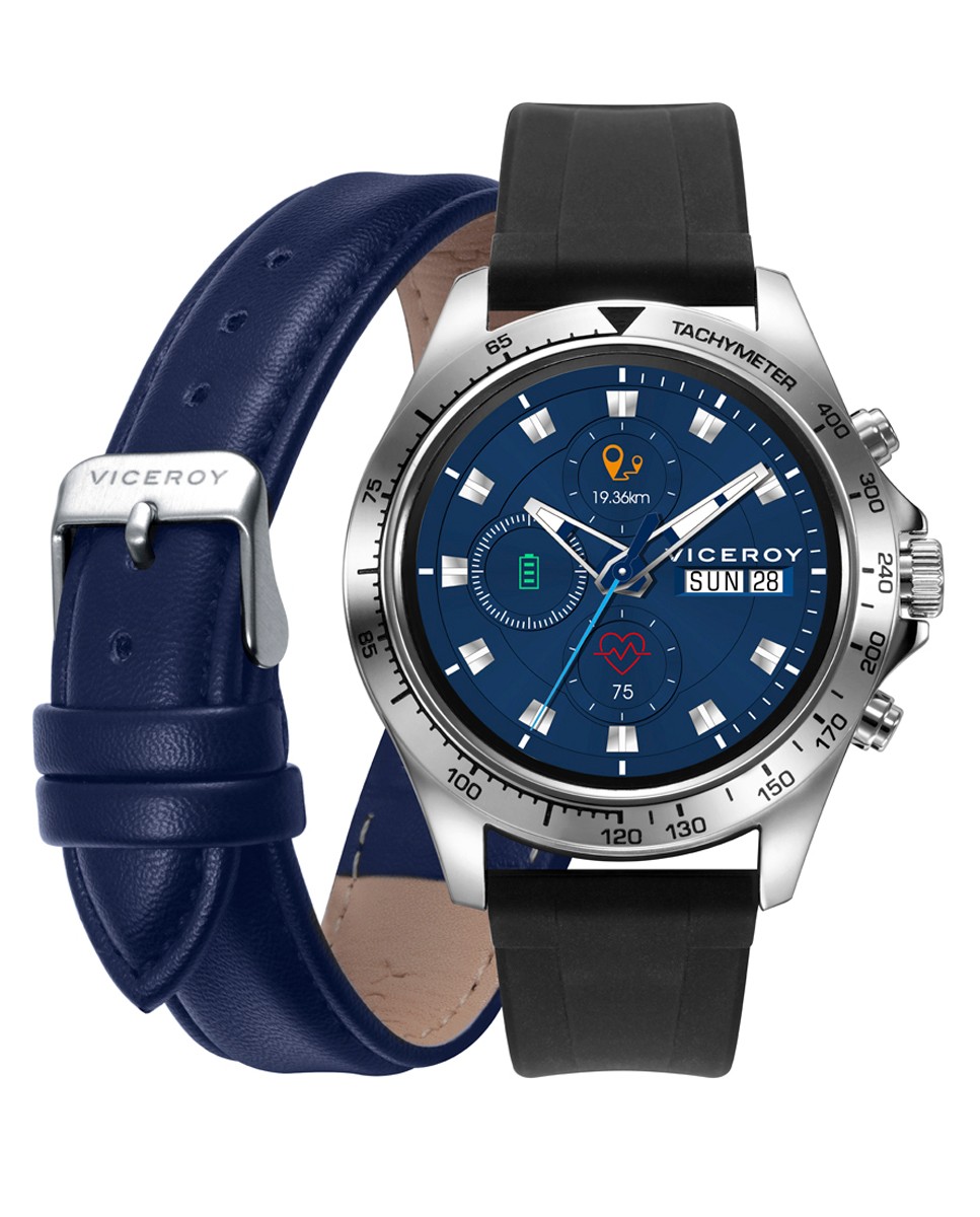 RELOJ VICEROY SmartPro lifestyle CON DOBLE CORREA AZUL DE PIEL Y NEGRA DE SILICONA 401253-80