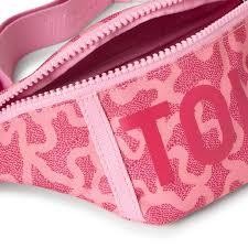 Riñonera infantil Tous Baby Kaos. Cierre con cremallera y correa ajustable. Logo TOUS delantero. Composición: 100%Poliéster // Forro: 100%Poliéster. Medidas: 26x11x6,5 cm. Color: Rosa.