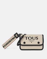 Riñonera mini de mujer Tous Audree en natural con detalles a contraste con detalle Tous en la solapa y cierre imantado. Tiene asa larga y tarjeteros interiores.