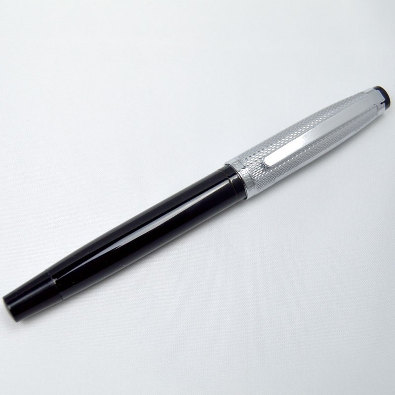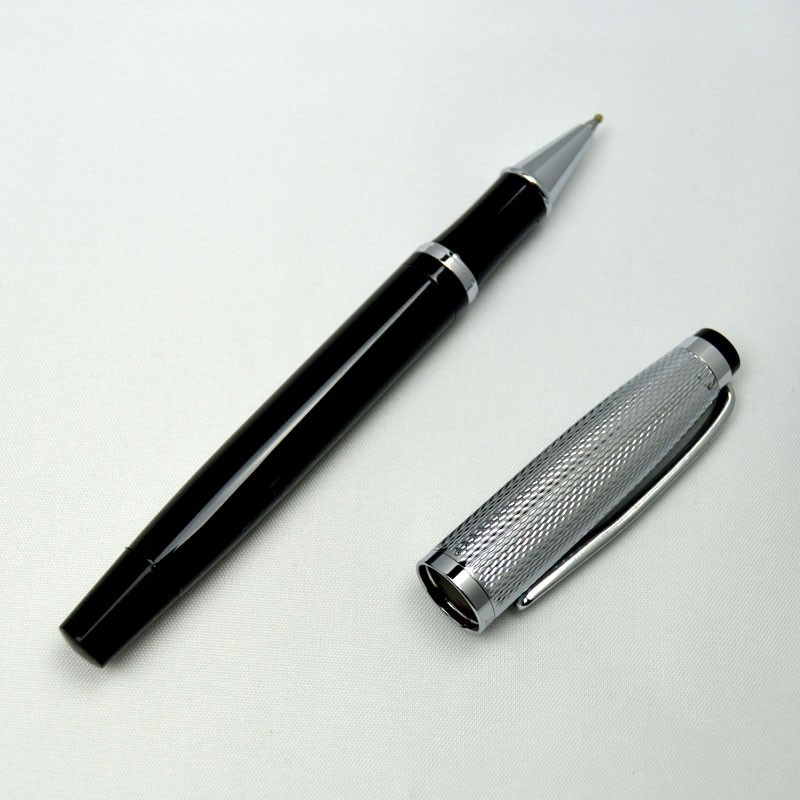 Bolígrafos personales en estuches. Bañado en plata y baquelita color negro con sección de grabado. Reposición de recambio fácil.