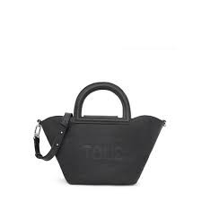 Bolso saca mediano TOUS Dora de piel vacuna con certificación LWG en color negro. Cierre de botón magnético. Asa fija de mano y asa bandolera ajustable y extraíble. Medidas (alto x ancho x fondo): 20 x 18 x 9 cm.