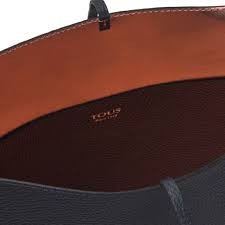 Bolsa saca TOUS colección Leissa de piel bovina con efecto troqueado en color azul marino. Cierre con cordón de piel. Asa de bandolera ajustable y extraíble. Bolsillo interior plano. Medidas: 36x34x8 cm.