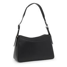Bolso bandolera grande TOUS CIty de poliuretano en color negro. Cierre de botón magnético. Bolsillo interior y exterior con cremallera. Asa de hombro ajustable. Medidas (alto x ancho x fondo): 22,5 x 37 x 14 cm.