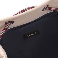 Bolsa saca Tous de la colección Empire Soft de nylon reciclado en nude. Cierre con cordon ajustable. Asas de mano y correa larga ajustable i extraíble. Bolsa cuenta con 2 bolsillo exteriores planos. Medidas: 12,5 x 23 x 20 cm.