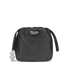 Saquito Tous de la colección Ina en color negro con elementos en color gris. Cierre con coordon ajustable. 1 bolsillo plano interior. Incluye detalle/borla oso. Composición: nylon reciclado. Medidas: 9 x 18 x 15cm.