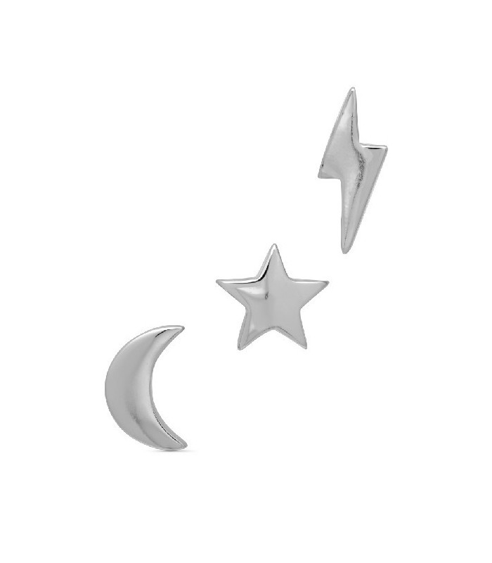 SET 3 PENDIENTES PLATA RAYO ESTRELLA LUNA PE5953R