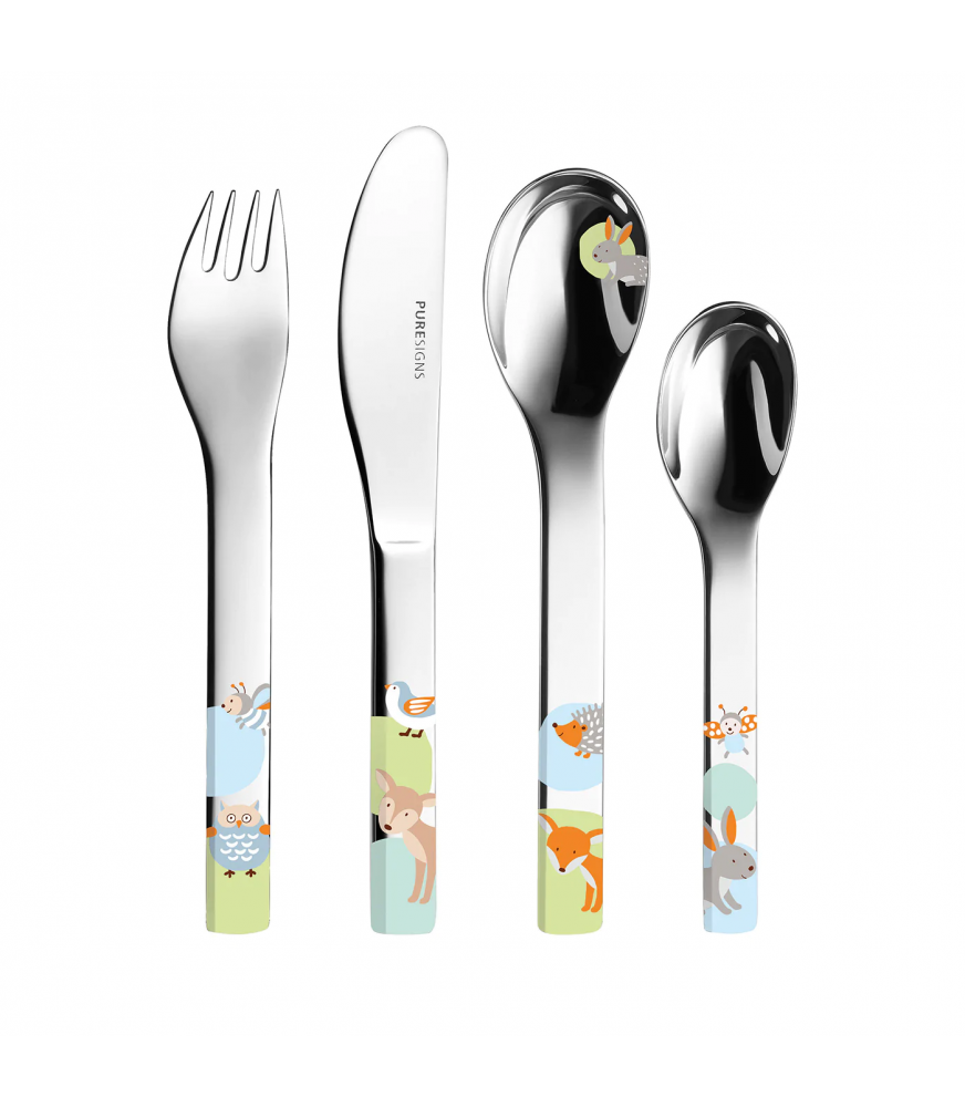 SET 4 CUBIERTOS WOODY ACERO Y ESMALTE LU6079