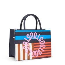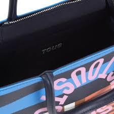 Bolso shopper mediano Amaya TOUS Hanna de lona con detalles de piel sintética en color azul marino. Cierre de cremallera. Bolsillo interior abierto. Asas fijas de mano y asa bandolera ajustable. Medidas (alto x ancho x fondo): 18,5 x 26 x 11,5 cm.
