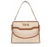 Bolso shopper mediano Audree Canvas de algodón con detalles de poliuretano y piel vacuna con certificación LWG en color beige. Cierre magnético. Dos compartimentos separados por uno con cremallera. Bolsillo interior y bolsillo exterior abiertos. Asa de hombro extraíble. Medidas (alto x ancho x fondo): 26 x 33,5 x 13,5 cm.