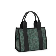Bolso shopping mediano TOUS Kaos Pix Amaya de lona con estampado en verde y negro. También cuenta con tapicería de cuero sintético. Cierre con botón magnético. Bolsillo frontal abierto y bolsillo interior con cremallera. Asas fijas y asa bandolera regulable y desmontable. Medidas (alto x ancho x fondo): 22 x 27 x 14 cm.