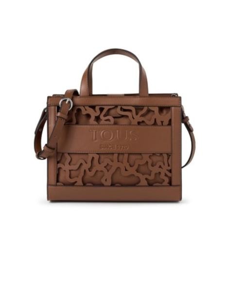 Bolso shopping mediano TOUS Amaya Kaos Shock de vinilo efecto piel en color marrón. Asas de mano y asa larga de bandolera ajustable y extraible. Lleva botónes a presión para poder incorporar bolsa Amaya Kaos Shock. Medidas: 13 x 27 x 22 cm. Nota: Bolsa interior está incluida.