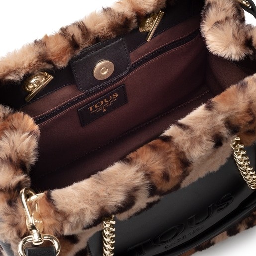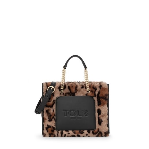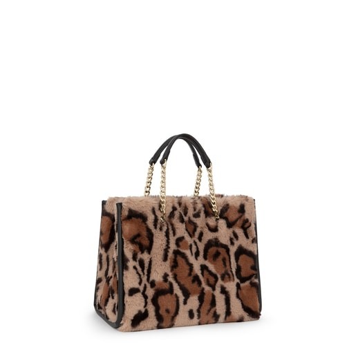 Bolso shopping mediano TOUS Amaya Wild de pelo sintético con estampado animal print en color beige y negro. La cadena incorporada en las asas de mano aporta sofisticación a esta pieza. Con una correa de bandolera ajustable y desmontable. El cierre es con botón magnético. Incluye un bolsillo exterior abierto. También viene con un bolsillo interior abierto y otro con cierre por cremallera. Este fantástico bolso de suave tacto se convertirá en un complemento ideal para este invierno. Medidas (alto x ancho x fondo): 22 x 27 x 16 cm